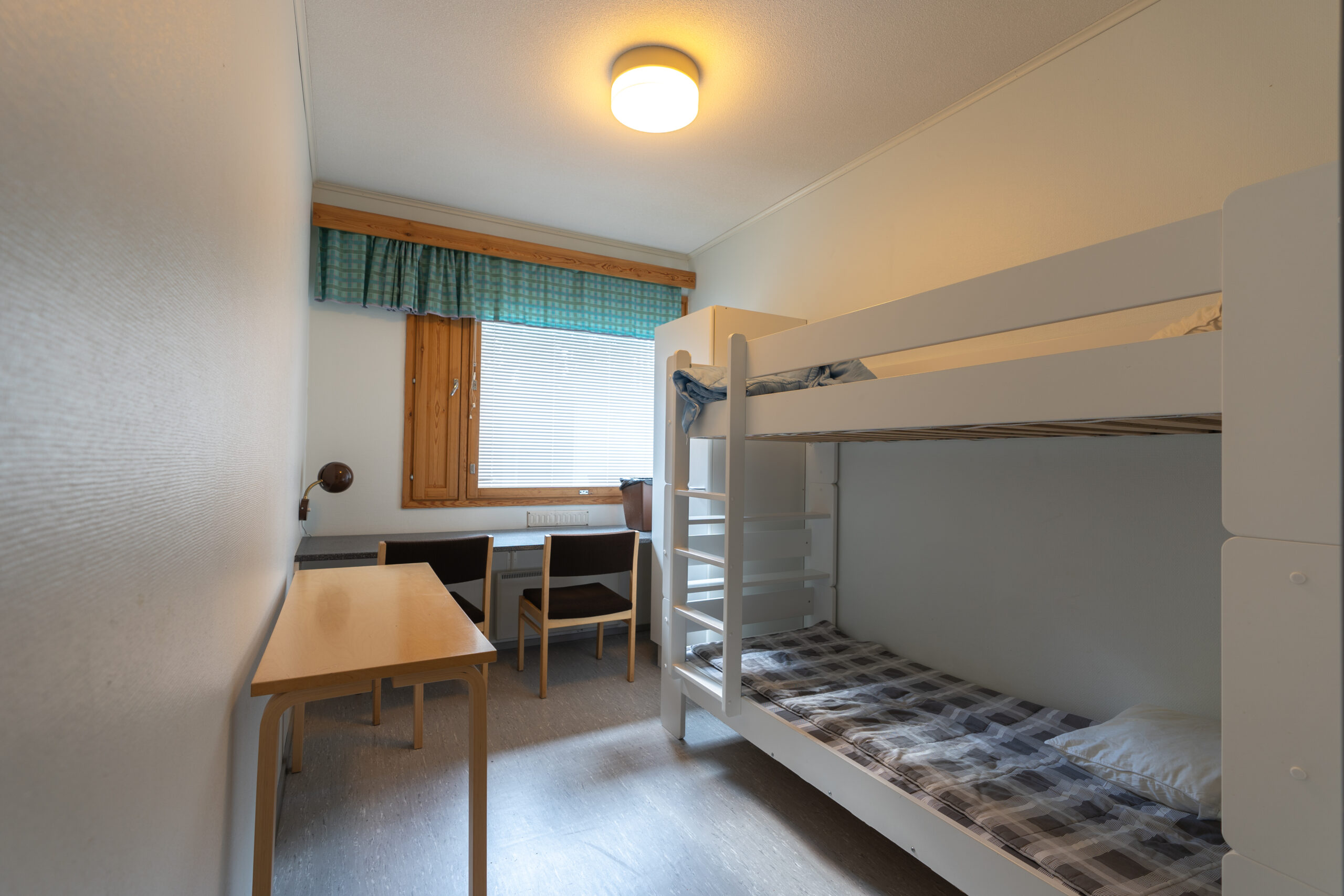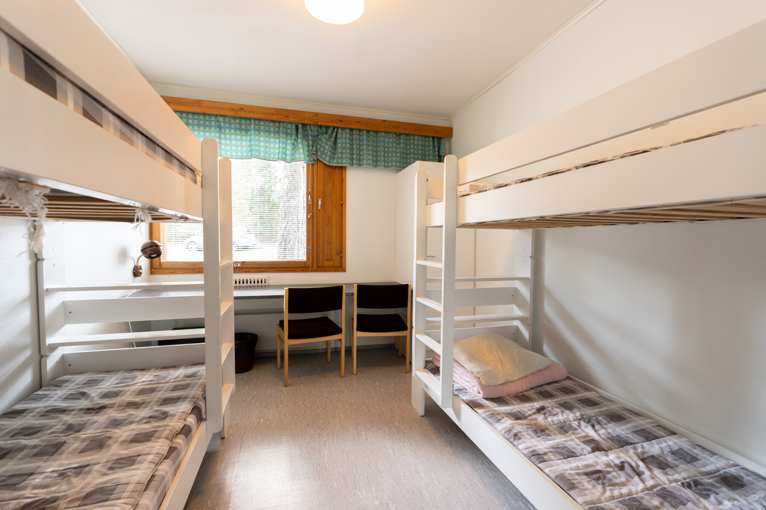 Majoitus tapahtuu majoitussiivessä kahdeksassa neljän hengen huoneessa, sekä kahdessa kahden hengen huoneessa. Keittiön vierressä on tämän lisäksi kaksi yhden hengen huonetta. Vuodepaikkoja on kokonaisuudessaan 38. Sänkyihin löytyy peitot ja tyynyt. Majoittujilla tulee olla omat lakanat.